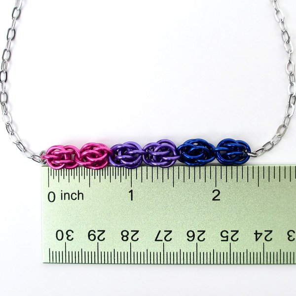 Bisexual pride necklace, chainmail Sweetpea weave LGBTQ jewelry, great gift for bi friends