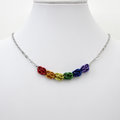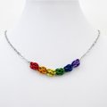 This gay pride chainmail necklace was handwoven in the Sweetpea weave. One unit of each color of the rainbow flag - red, orange, yellow, green, blue, and purple - make a 2.5 inch long section at the front of the chain. The rest of the necklace is 3mm stainless steel oval link chain. A stainless steel lobster claw clasp is the finishing touch.